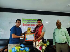 डोटी– सिलगढी स्थित भैरव प्रसाद गणका गणपति जनमत कार्कीलाई जिल्ला स्थित नागरिक संघसंस्थाहरुले संयुक्त रूपमा अभिनन्दन गरेका छन् । सरुवा भई डोटीबाट सुर्खेत जानलागेका कार्कीलाई शनिवार एक औपचारिक कार्यक्रमका बिच दिपायलमा अभिनन्दन गरिएको हो । उनी सोमबार सरुवा भई जान लागेका छन् । त्यतीमात्र नभइ उनलाई दिपायल सिलगढी नगरपालिका वडा नं. ६ को सिलगाउँका स्थानीय पनि गाउँमै बोलाएर अनिनन्दन गरेर बिदाइ गरेका छन् ।