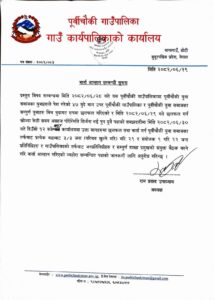 आज (बिहीबार) प्रत्येक वडाबाट परिचय खुल्ने गरी ३ जना र १ जना संयोजक गरी २२ जना प्रतिनिधि र जनप्रतिनिधिहरू लगायत शाखाका प्रमुखहरूको उपस्थितिमा पालिकाको वडा नम्बर -४को कार्यलयमा संयुक्त बैठक बस्ने गरी पालिकाले आव्हान गरेको अध्यक्ष उपाध्यायले बताए ।