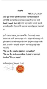 यसै विषयमा जेनजि डोटीको ध्यानाकर्षण भएको भन्दै प्रेस विज्ञप्ति समेत जारी गरेको छ ।