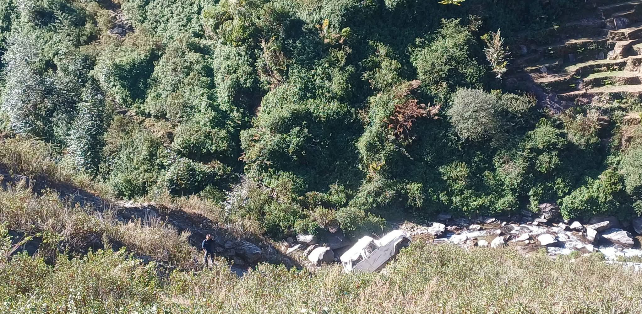 जिप अनियन्त्रित भई सडकबाट ६० मिटर तल खसेको छ।