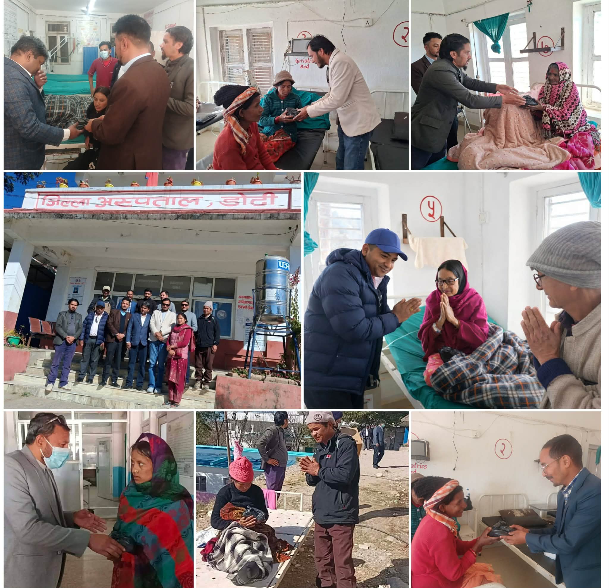 प्रेस चौतारी डोटी शाखाको आयोजनामा अस्पतालमा रहेका १५ जना बिरामीहरुलाई स्वास्थ्य लाभको कामना सहित फलफूल वितरण गरिएको प्रेस चौतारी नेपाल डोटीका उपाध्यक्ष तेजु ओलीले जानकारी दिए ।